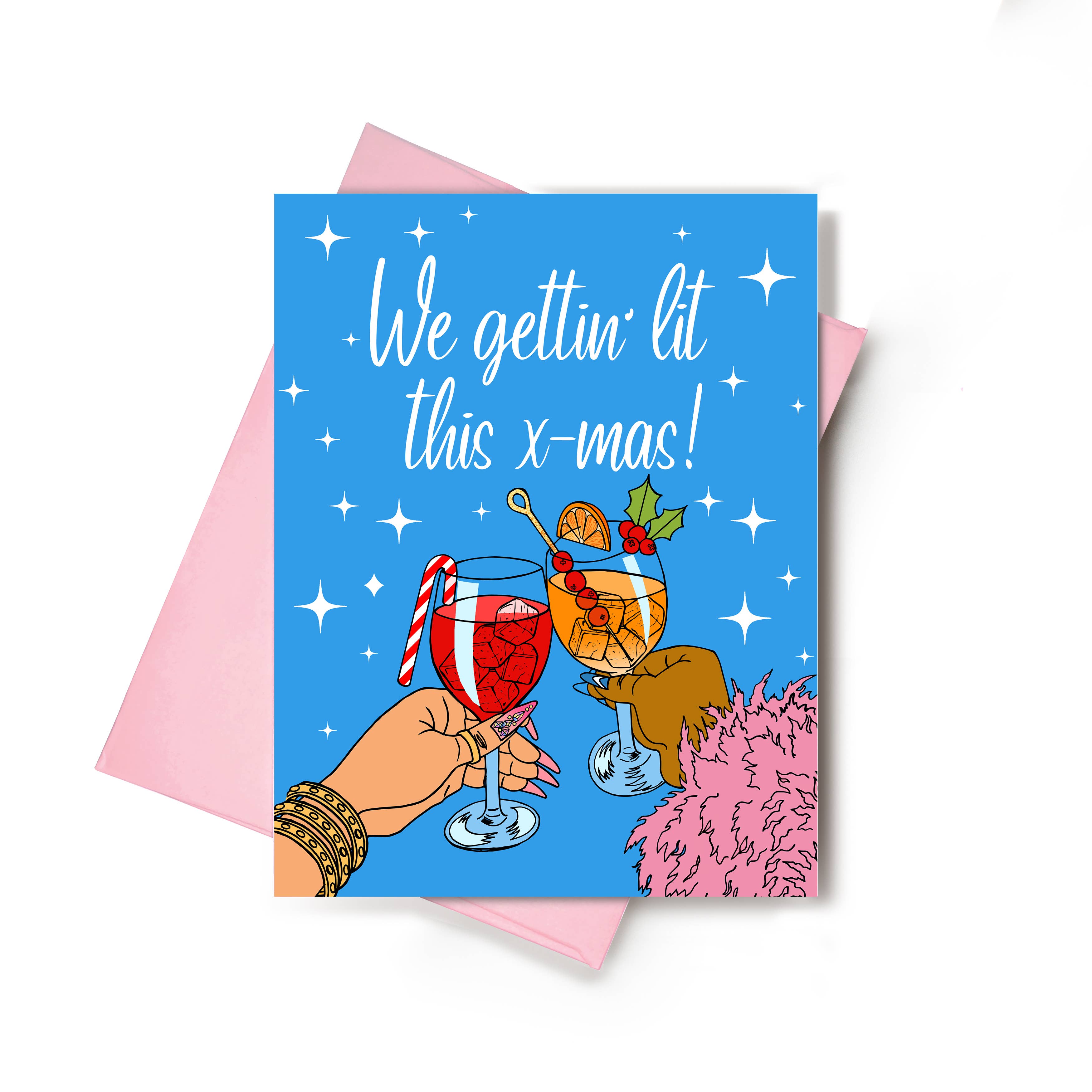 'Tis the Season to Be Tipsy with this boozy mid-century inspired holiday card set. Pairs perfectly with a bottle of wine as a holiday party host gift. Also available as boxed sets in separate product listing. This card was one of 8 designs created especially for Etsy and Match.com's #SinglesGreetings holiday campaign. It was originally only available to send digitally on match.com and is now available to wholesale and all your tipsy holiday gatherings. • Blank inside • A2 (4.25" x 5.5") • 100# FSC-certified paper • Comes with a color-coordinated envelope • Packaged in a protective cellophane sleeve • Flat-printed • Printed in the USA.
