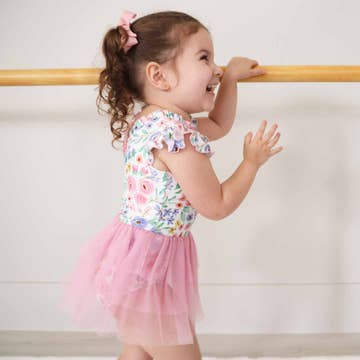 Our leotards are perfect for your tiny ballerina's first dance class. Our founder created them when she couldn't find a cute leotard, in a tiny size, for Mila's first dance class. Everything was either too big or the fit was totally wrong. Not only did Mila wear these leotards for dance class, she wore them to play around the house or in the backyard with rain boots. Also great for layering with skirts or pinafores. FIT - FABRIC - CARE: * Sizes run slightly large * 95% Polyester / 5% Spandex * Machine Wash Cold / Lay Flat to Dry ***Please note this is a leotard (not a bodysuit) and does not have snaps for diaper changes***