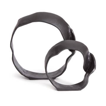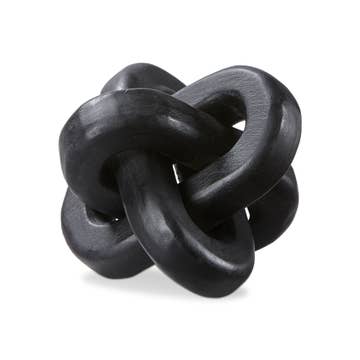 The wedding knot is a fair trade product handmade in Kenya. It is hand carved out of one piece of soapstone, sanded until smooth, polished, and then dyed black. The two loops of the wedding knot stand for a couple that has become joined through marriage, but remain two individual people. The sculpture is given to a couple on their wedding day with a blessing: May the union last as long as the stone from which the sculpture is carved.
