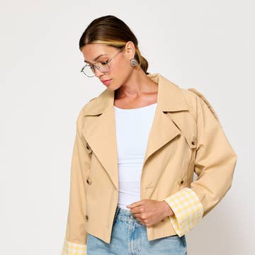 ***Image usage is allowed to the buyers who purchase from us via Faire only. SI-26853 Double Breasted Short Trench Jacket Material: FABRIC: POLY WOVEN 100% POLYESTER SI-26853 Double Breasted Crop Trench Coat (100% POLYESTER) KHA-beige-172710 BLK-black-172711 KHA-sand khaki-185739 BRG-maroon-185740 AnchorBestseller SI-26853 Double Breasted Crop Trench Coat (100% POLYESTER) KHA-beige-172710 BLK-black-172711