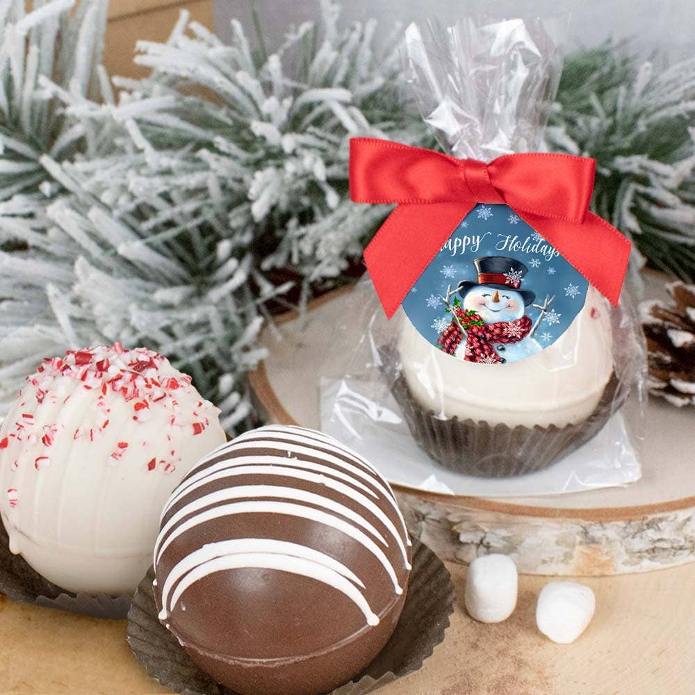 These are THE BOMB!!! No really -- you've never had a Hot Cocoa Bomb like these. Packaged in a cello gift bag. Ask for an assortment or specific flavors. Valentines Flavors Decorated For Valentine’s Day: Hot chocolate Milk chocolate shell with hot cocoa and mini marshmallows inside. Snickerdoodle White chocolate shell with white-hot cocoa mix. Plus a little bit of cinnamon, nutmeg. Unicorn White chocolate cocoa with lucky charm marshmallows and unicorn sprinkles. Cookies N Cream Cookies n’ cream, Hershey chocolate & mini marshmallows in a cookies n cream shell. Tuxedo White chocolate shell with hot cocoa mix and marshmallows. Salted Caramel Salted caramel shell with cocoa mix and marshmallows. Vanilla Cappuccino White chocolate shell with a vanilla cappuccino mix Strawberry white chocolate White chocolate shell with a strawberry mix