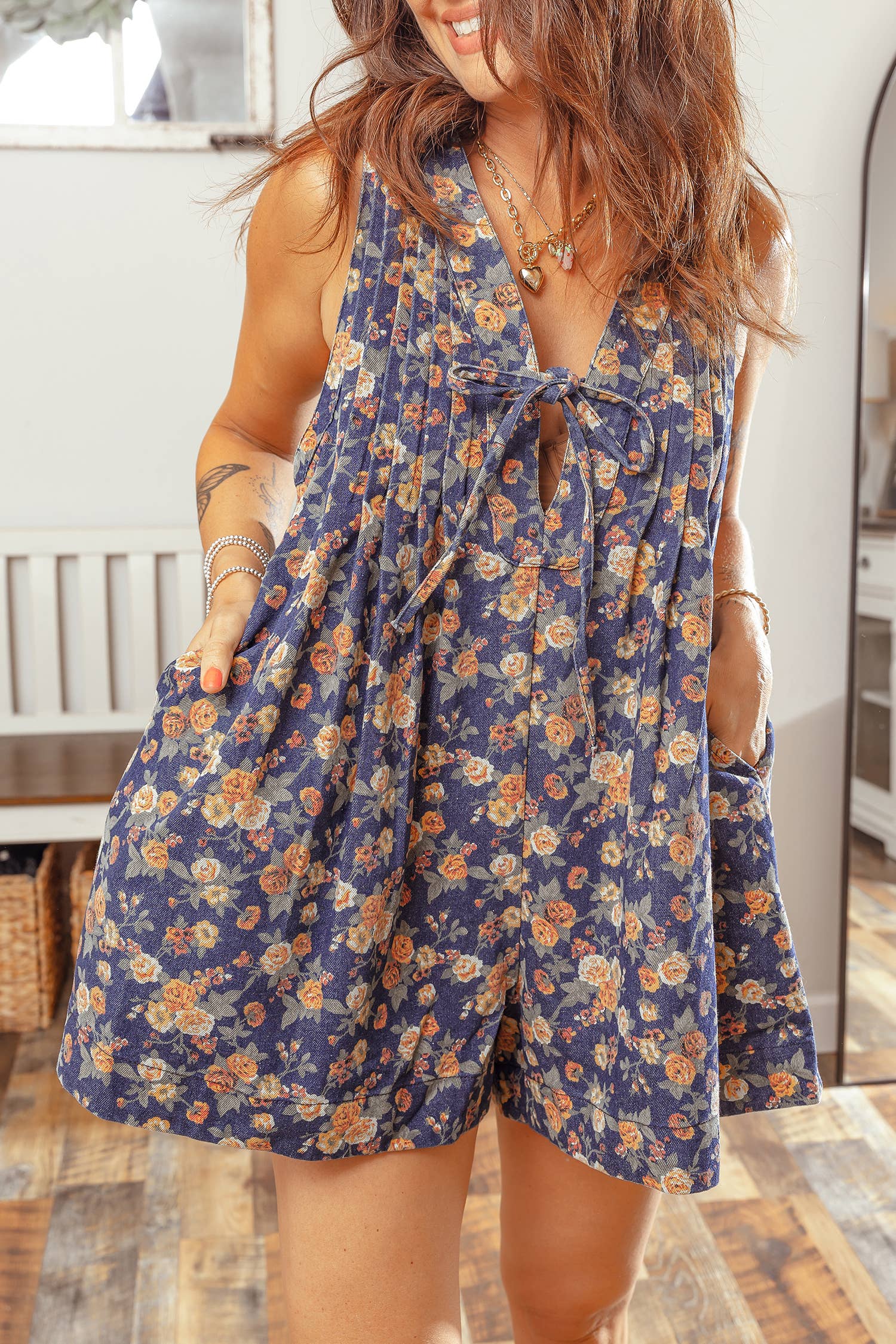 FLORAL PRINTED ROMPER 100% Rayon Size S(2) - M(2) - L(2) Made in China MODEL IS 5'7" WEARING SIZE SMALL. Floral print romper with a smocked waist, puff sleeves, and a tie-front detail. Young Contemporary, Floral Print Dresses, Maxi Dresses, Casual Dresses, Satin Dresses, Cocktail Dresses, Night Out Dresses, Midi Dresses, Sleeveless Dresses, Party Dresses, Sequins Dresses, Special Occasion Dresses, Prom Dresses, Casual Dresses, Homecoming Dresses, Solid Dresses, Plaid Rompers, Casual Rompers, Jumpsuits, Casual Jumpsuits, Sequins Tops, Fashion Tops, Beaded Tops, Sequins Skirts, Tulle Skirts