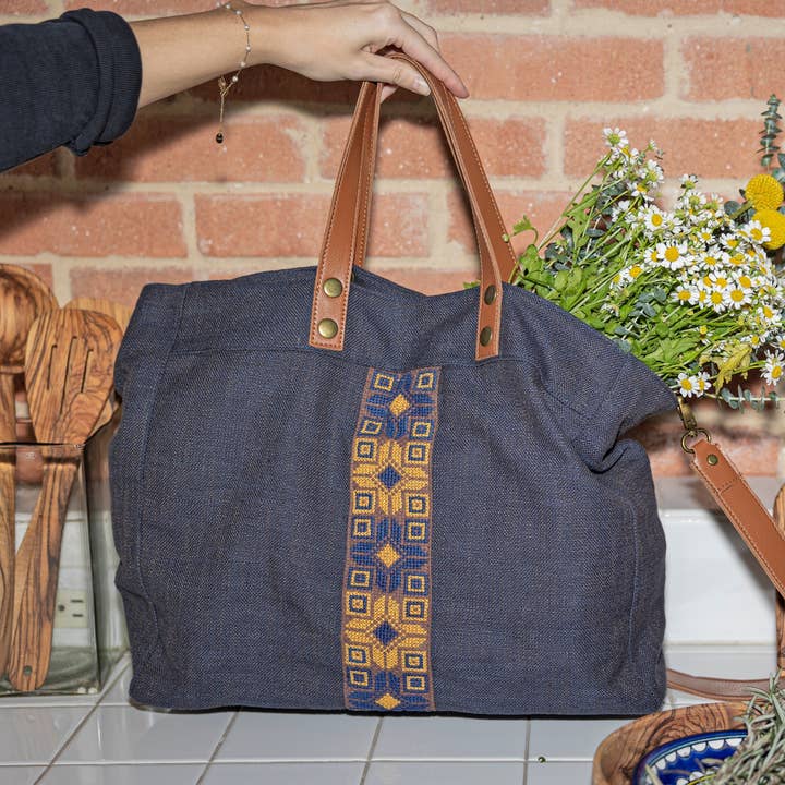 The Fabric Market Tote is a fantastic everyday bag that can be used for school, work, or travel. Decorated with the embroidery style, tatreez, you can show off Palestinian heritage anywhere you go. Tote bags are versatile, spacious, and stylish bags designed to carry a variety of personal items. They are often favored for their simplicity, practicality, and durability. The open-top design and spaciousness make them easy to pack and access your items quickly. Tote bags are an essential item for anyone looking for a practical and stylish bag to carry everyday items, whether for shopping, work, travel, or leisure activities. Women in the West Bank have historically dealt with lack of economic opportunity and gender inequality.