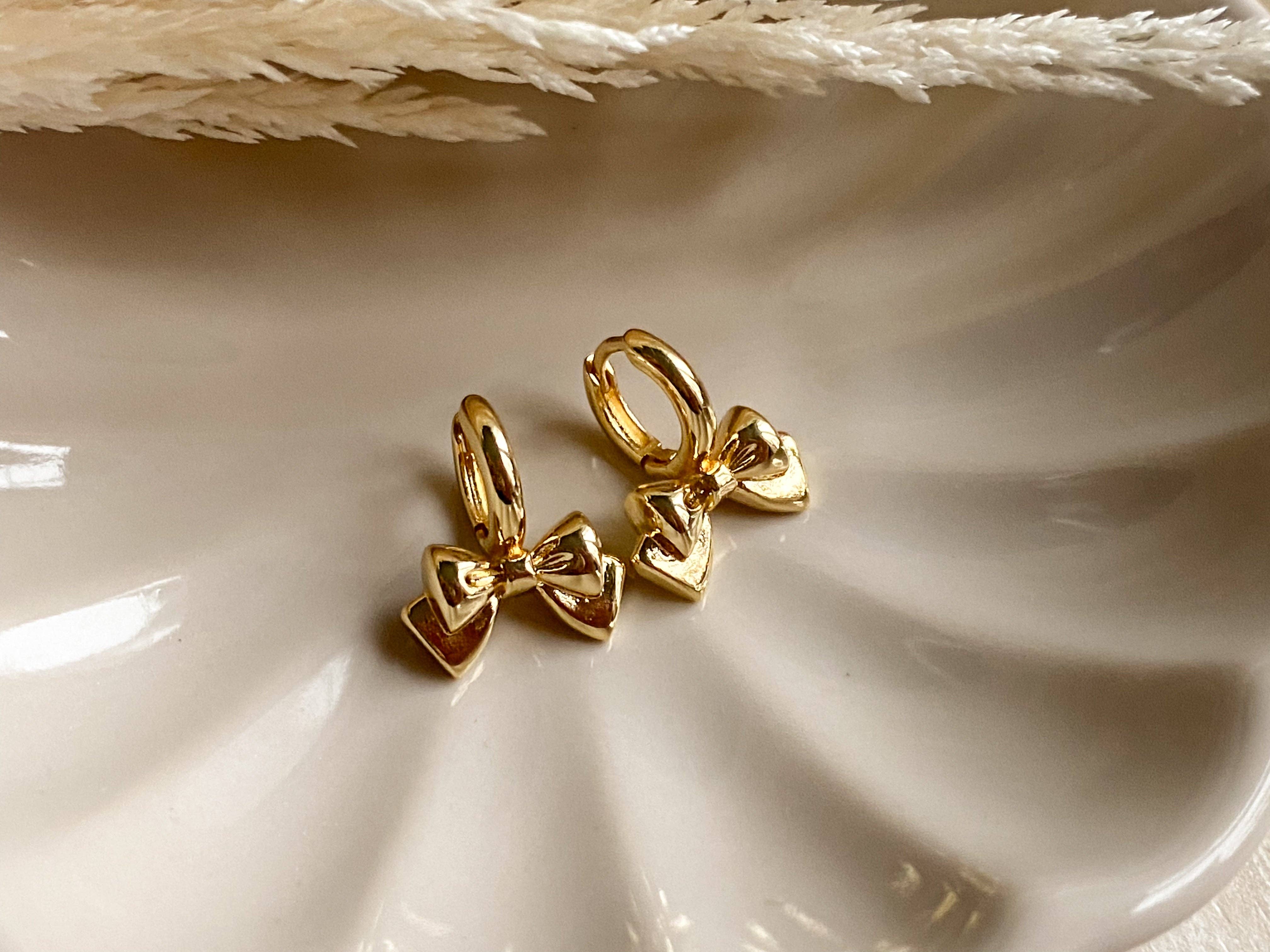 Adorable cubic zirconia bow studs that are available in both gold and silver. Platinum and 18K Gold Plated Brass. Nickel free