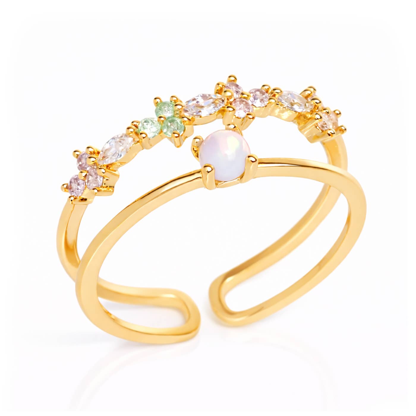 Rainbow Moonstone and Opal Empress Ring