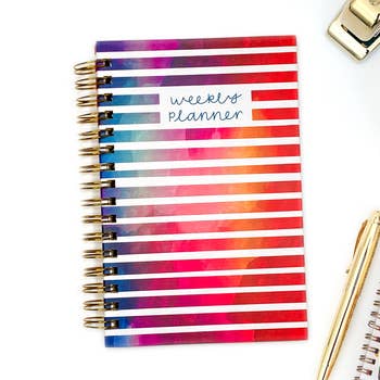 This Stargazer 12 Month Planner measures 8 x 9.25 Inches with spiral binding. It has a durable laminated cover with beautiful foil accents, and it is undated for flexibility of use. It includes 12 heavyweight monthly dashboards with laminated tabs (6 have foil accents and 2 have pockets) plus note pages, monthly spreads, and vertical weekly spreads. Also includes 140+ coordinating fun and functional stickers.