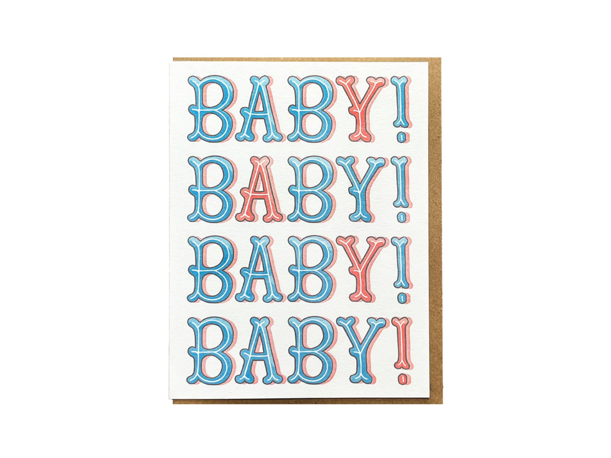 A2 (4.25” x 5.5”) card. Blank inside. Printed on natural white cardstock and individually packaged with a matching envelope in a clear plastic sleeve.