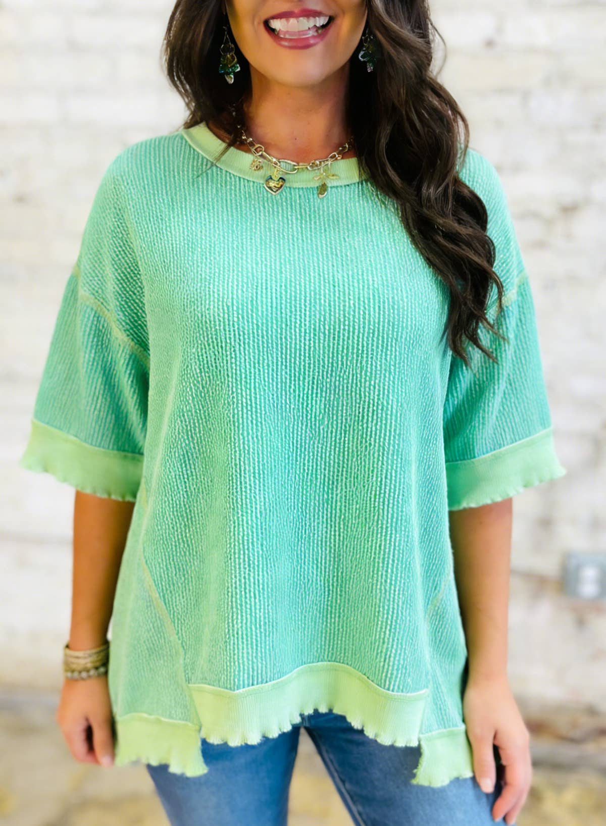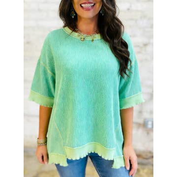 Daisy Waffle Ash Wash Top The Daisy Waffle Ash Wash Top is the ultimate lightweight layering piece for effortless everyday style. Featuring a soft ash-washed finish and textured waffle-knit paneling at the shoulders, this top delivers a lived-in look with a relaxed, flattering fit. Designed with a breathable feel and subtle seam detailing, Daisy is perfect for spring days, cool summer nights, or easy year-round layering. Style it with denim, shorts, or leggings—or throw it on as a casual coverup for an on-the-go look customers will love. Why boutiques love it: * Soft ash-washed fabric for a vintage look * Lightweight & breathable * Waffle-knit shoulder detailing * Relaxed, easy fit * Perfect for layering or casual wear * moq only 4 per colors A versatile, go-to staple that blends comfort and style—Daisy is a must-have addition to any boutique collection. material: 98% Poly 2% spandex sizing from S-3X, modeling wearing size S
