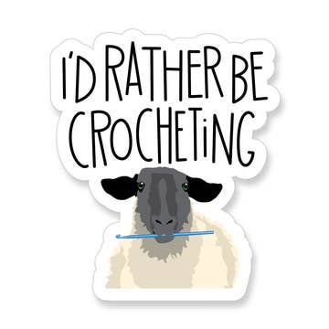 Sheep And Alpaca Knitting Together On A Park Bench Measures about 4" x 4.5" Our custom stickers feature a special laminate that protects them from exposure to wind, rain and sunlight. You can even put them in your dishwasher and have them come out looking brand new.