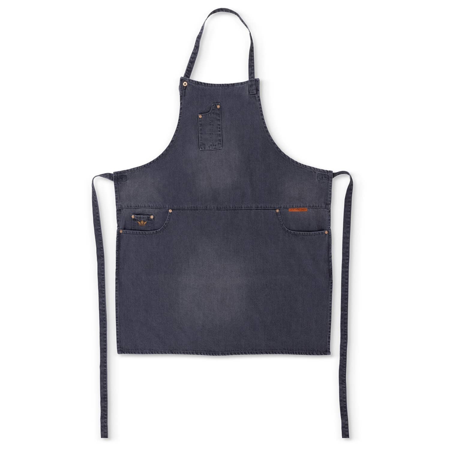 Our waxed canvas Industry Aprons are built to handle heavy use while having a classic and refined look. Perfect for working behind the bar or front of house, these aprons will wear in beautifully over time. Materials: - 10.10 oz. army duck waxed canvas - 4 oz. full grain oil-tanned leather straps - Copper rivets Features: - Water-resistant - Spot clean with damp towel - Pen pocket - Two waist pockets - 36 in. leather waist straps Size: 29 in. wide x 34 in. tall