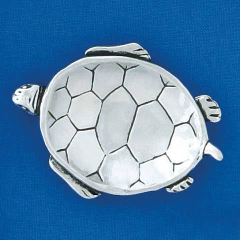 This exquisite small silver dish features a beautifully crafted turtle pewter charm, making it a perfect decorative piece for any home. Ideal for holding small trinkets or as a unique gift, the dish comes elegantly boxed, enhancing its appeal for special occasions. Its intricate design and polished finish ensure it will be a cherished addition to any collection. Piece approx 1.75" in diameter. Box approx 2" x 2" x .5". Handmade By The Sea! 10% Of profits fund charitable organizations.