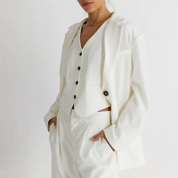 LINEN STRIPE JACKET SELF:70%RAYON, 30%LINEN TOTAL LENGTH 29" | BUST 18" | SLEEVE LENGTH 8" |SHOULDER 17" MODEL IS 5'8" | BUST 32B" | WAIST 24" | HIPS 33" WEARING SIZE SMALL