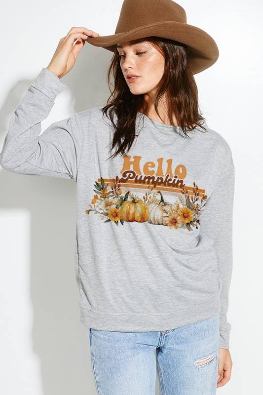 OAT COLLECTIVE - Wholesale Graphic Sweatshirt - Women's - HELLO PUMPKIN Foil Mineral Graphic Sweatshirt