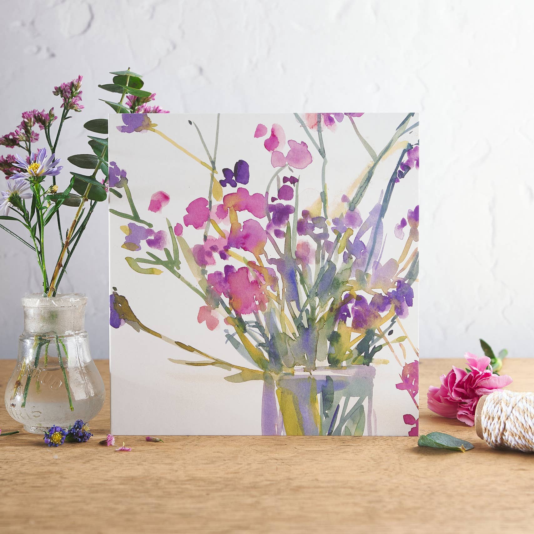 Our collection of bright and vibrant watercolour images, from the flower and allotment garden. All the designs are taken from Diana Fegredo's original watercolour paintings. Ideal for many occasions - to say Happy Birthday, Get Well, Thinking of you, or send a cheerful colourful note. 150mm square. With envelope. Blank inside for your own special message The cards come packaged a cello bag Sold in units of 6 cards