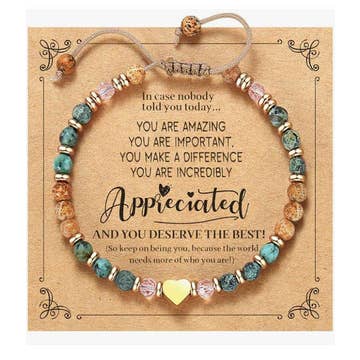 I originally ordered the Soul Shine bracelets to give out as client presents because my shop's name is Soul Shine. Once they arrived, I had clients asking to purchase them just from seeing them behind the counter! I immediately placed a much larger order with a large variety to choose from. This company gets ⭐️⭐️⭐️⭐️⭐️ Great price point, quick processing and arrived earlier than expected, customer service has been top notch! I can already tell this is a company I will continue to order from.