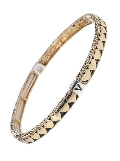 Immerse yourself in the elegance of the Oyster Bangle by Susan Shaw. This handcast gold bangle, inspired by the natural beauty of oysters, brings a touch of sophistication to any ensemble. Each piece is meticulously crafted by experienced artisans in our San Antonio boutique workshop, reflecting over three decades of exceptional design expertise. Our commitment to high-quality plating methods, semi-precious stones, and cultured pearls is evident in this unique piece. This bangle is not just a piece of jewelry, but a testament to Susan Shaw's dedication to creating designs that resonate with our customers' needs and desires.