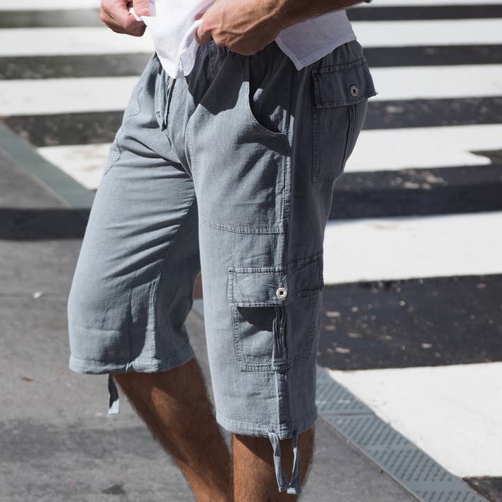 Cotton Natural cargo shorts with adjustable drawstrings. Made from the finest Peruvian Pima Cotton. Soft and comfortable, breathable relaxed fit.