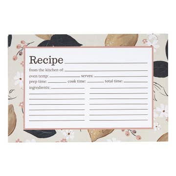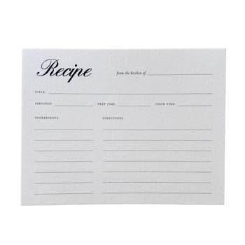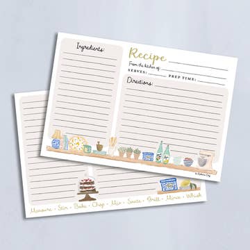 Write down your favorite recipes on the Baking Recipe Cards. There are 12 cards with space for ingredients on one side and instructions on the back. Details: - Set of 12 recipe cards - 4" x 6" - Printed on eggshell textured paper - Original watercolor artwork by Emily Lex