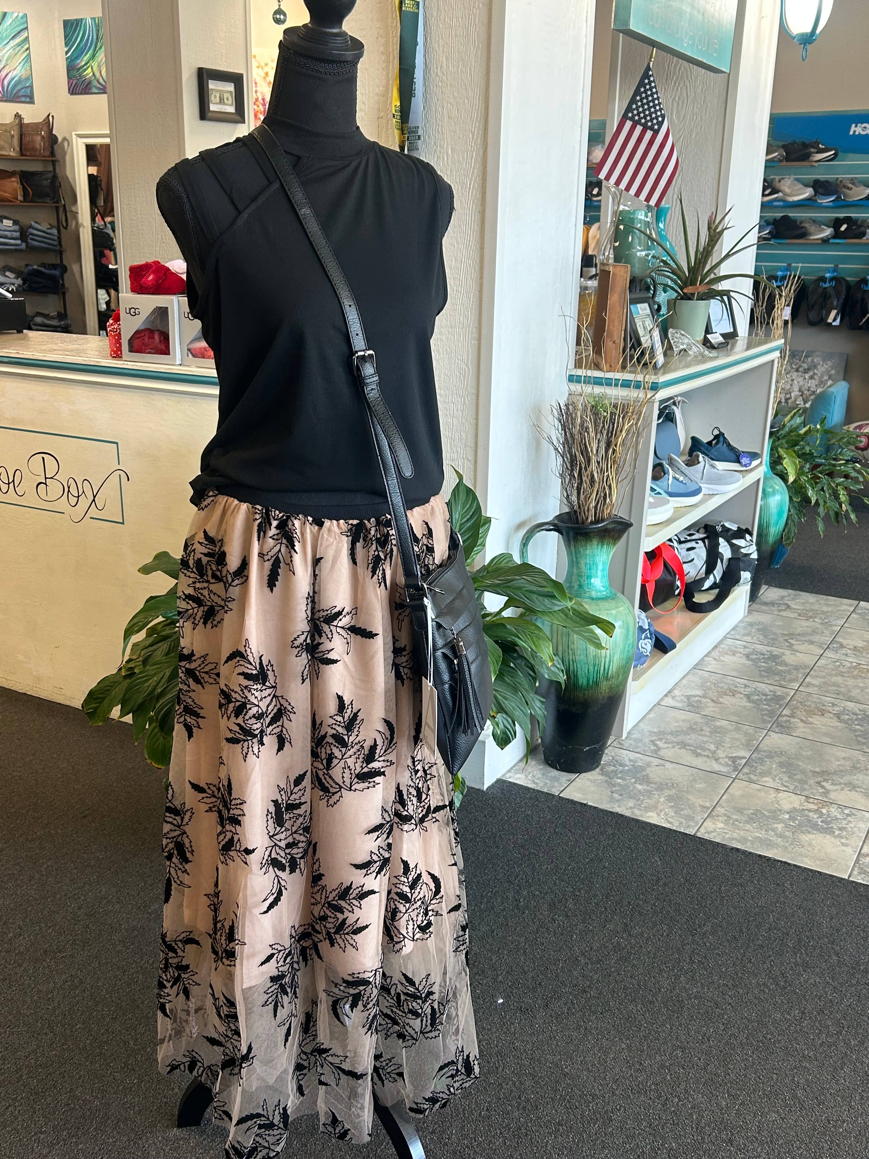 Apricot Floral Leaves Embroidered High Waist Maxi Skirt