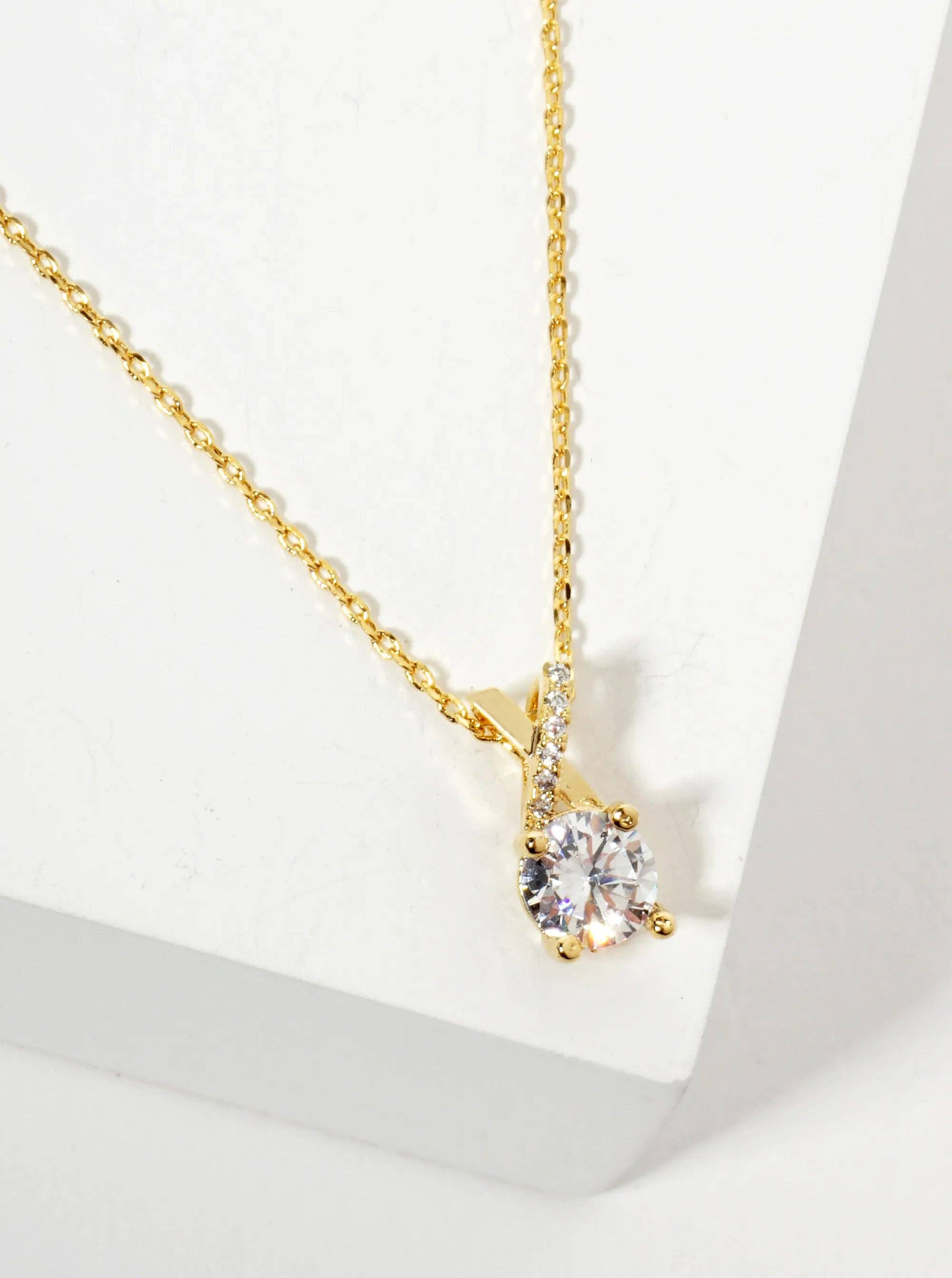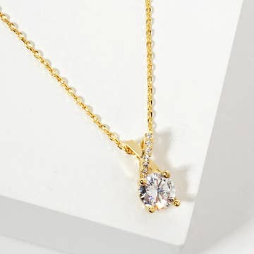This necklace features a beautiful sparkle that is sure to catch the eye. This elegant necklace is perfectly complimented by a dainty chain, adding a touch of sophistication to any outfit. Dimensions: Approximately 15.5" w/ 2" extender White gold plated sterling silver 1.5 carat brilliant Moissanite, color GH, color VS+ Lead and nickel free Crafted in China