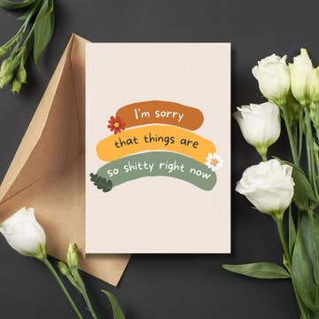 Greeting Card • Damn, I’m Glad You Didn’t Die • Illustrated Floral Leaves Hand Lettered Sympathy Let them know you’re glad they survived. From anything as small as a paper cut and a little sarcasm to a true life or death situation, tell them you’re happy they’re still here. This is also a great card for anyone who survived a car accident, an illness, Covid, cancer, a divorce or bad relationship, college finals, or an unexpected life event. Printed on high quality textured card stock. This listing is for one greeting card, envelope included. • Inside: [Blank] • Size: A2 (5.5" x 4.25") • Digitally Printed • Printed on 110 lb. Cardstock, FSC Certified, Green Seal Certified, Green-e Certified, Processed Chlorine Free, 30% Post Consumer Fiber, Produced with Wind-Generated Electricity • Envelope Included (color may vary)