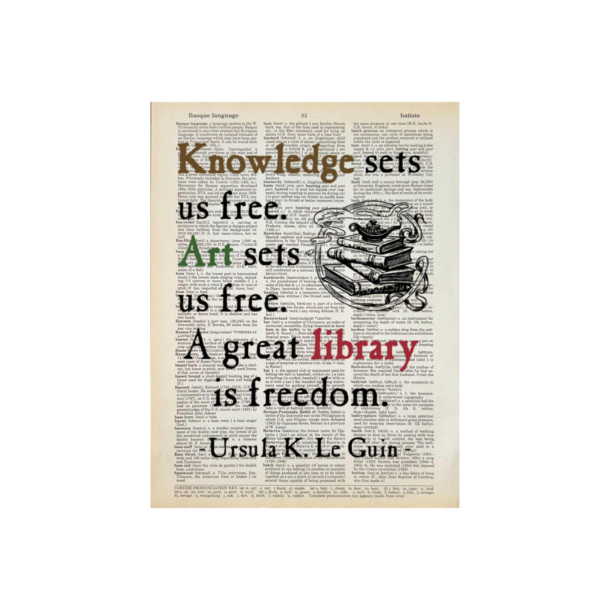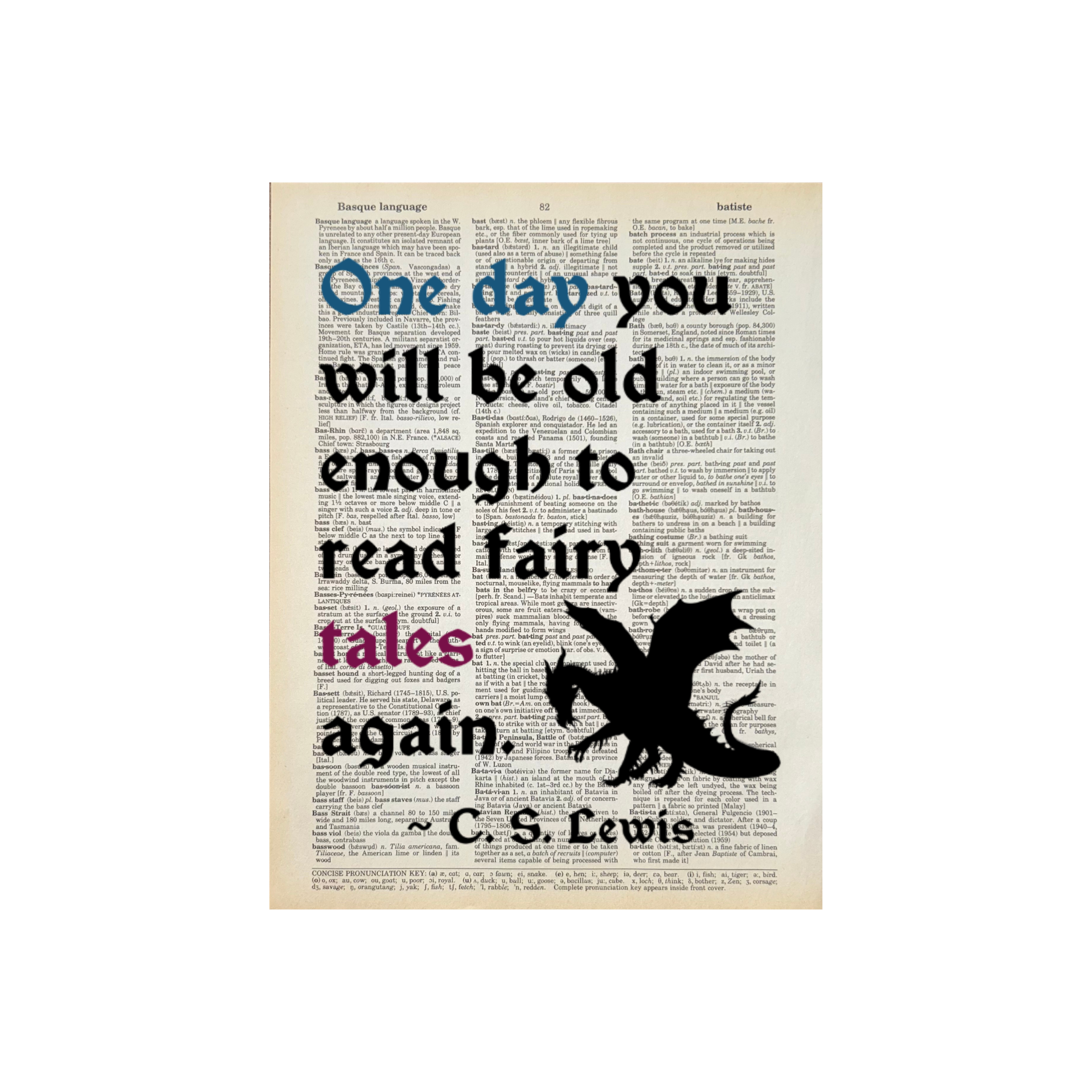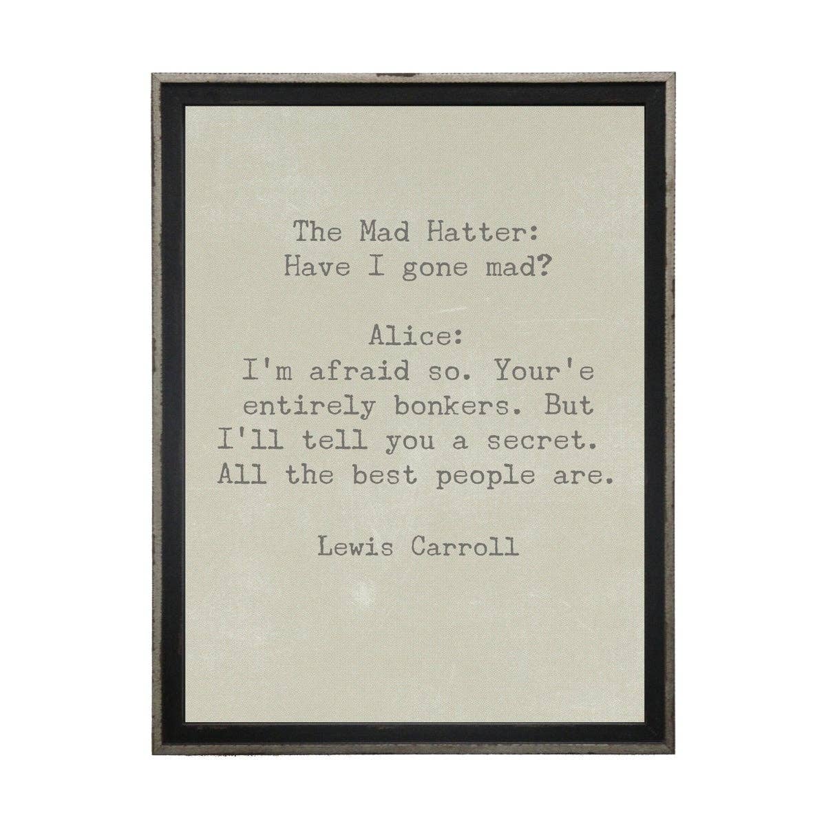 You're mad. Bonkers. Off your head. But I'll tell you a secret, all the best people are. (Alice in Wonderland), Great for children's stores, gift stores, bookstores. For all Bookish Birds Prints: - Quotes are printed on real dictionary pages, so no two pages are exactly alike. - Patinas will vary across pages because each dictionary has slightly different coloration. - Pages are printed on random dictionary pages so the print will not necessarily be on the exact page from the picture. - Frame not included. - Pages come in sealed sleeves with cardboard backer. - Pages frame up beautifully. Size is roughly 8.25"x10.75" - $100 minimum purchase. - Free shipping on orders of $300 or more