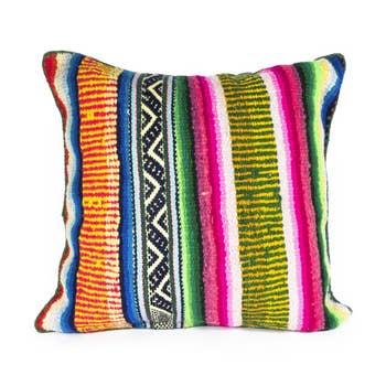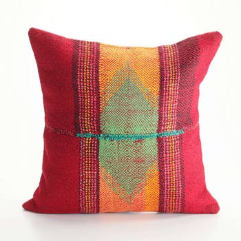 Stunning southwestern boho statement piece pillows. Each pillow is backed with Linen, and finished with an invisible zipper. Each is artfully handcrafted. Dimension: 20" x 20". Dry spot recommended pillowcase only.