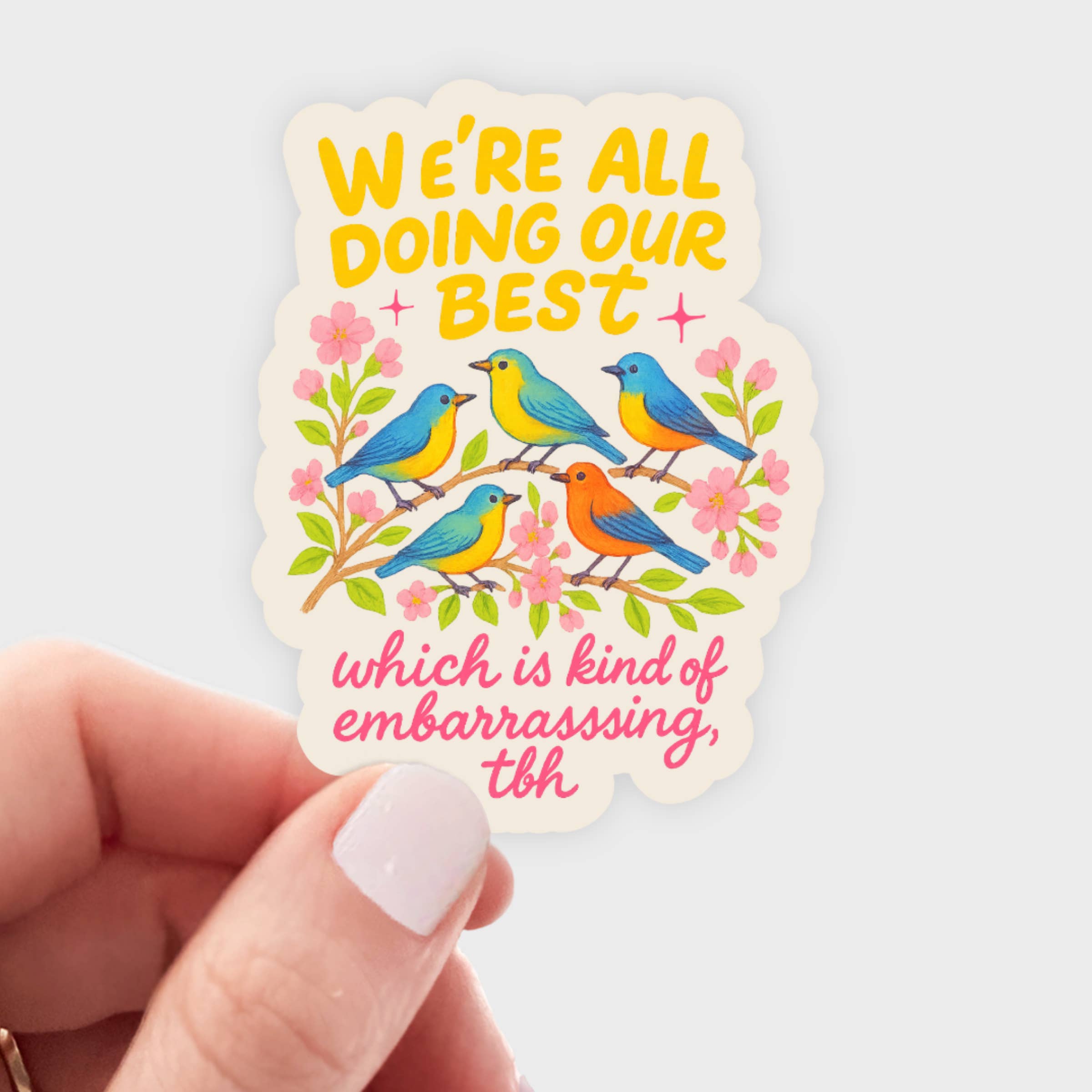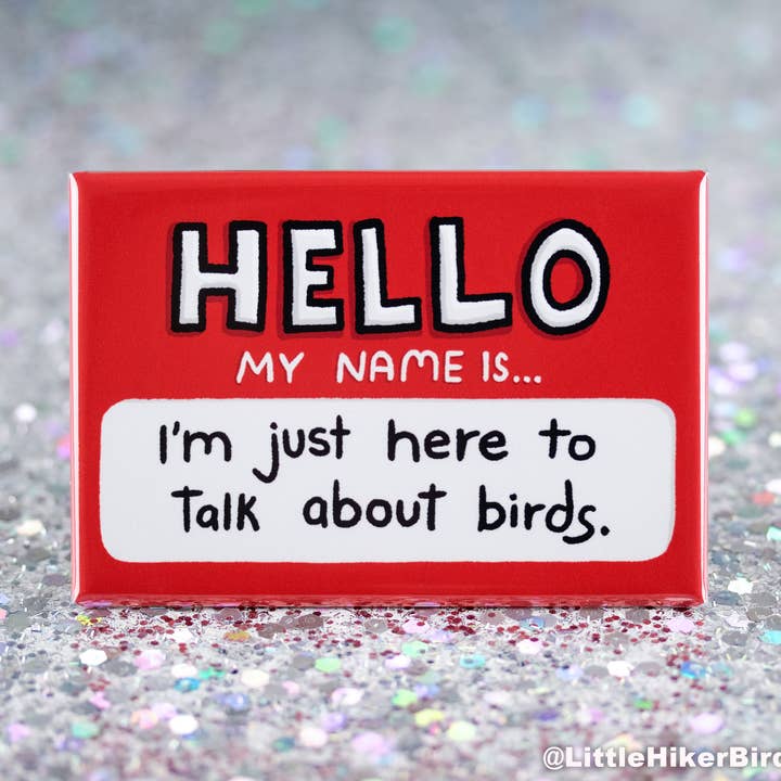 Hello, I'm just here to talk about the birds. The perfect sticker for birdwatchers and nature lovers to introduce themselves at parties. This sticker would sell great at pet stores, bird feed and supply stores. Stickers are thick, durable, dishwasher safe when placed on water bottles, weather resistant and UV protected, so they won't fade in sunlight! Stickers sell best as impulse purchase products near the register, since everyone loves collecting them. They make great stocking stuffers and small gifts for the holidays, birthdays, Mother's Day, Father's Day, or back to school. Everyone from kids to adults love stickers on their laptop, water bottles, cars, helmets, and more. Sticker is approximately 3". Stickers will arrive loose ready to display. Sold in multiples of 6. No product packaging.