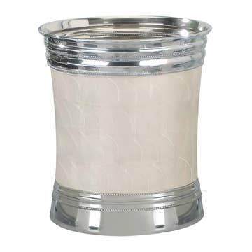 Details Make Design.... Made exclusively for Arte Italica in Florence, Italy our Florentino Collection is comprised of six extraordinary hand made wood pieces. These elegant accent pieces add a unique and refined touch to any room. Both functional and beautiful they draw the eye immediately. Our classic Florentino Leone Wooden Waste Basket Antique Silver is finished with an exquisite antique gold and silver design and is adorned with the iconic Florentino lion head in pewter. You won't find anything like it anywhere. Pair with our Florentino Tissue Box Cover in Antique Silver to add that perfect detail to any room. Dimensions: 9.5 inches long 7.5 inches wide 11.75 inches tall Care: Hand clean with a dry soft cloth.