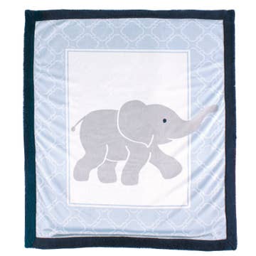 Beautiful block-printed Kantha quilt featuring adorable little grey elephants with their trunks up (that brings good luck!). This blanket also comes with a super cute elephant tota that can be hung as decoration. Block printing is a traditional form of art in India. Artisans stamp lengths of cotton fabric with color using hand-carved woodblocks. Many times, the prints are done in multiple layers. The outcome is a vibrant pattern that exemplifies the culture around it. Block printed by hand Stitched with a kantha-style pattern Machine washable Size: 40" x 40" Keywords: elephant, baby, quilted, jungle, block print, gray, cotton, India, boho, fair trade, hand made, spring summer, fall, winter, gift, Mother's Day, Father's Day