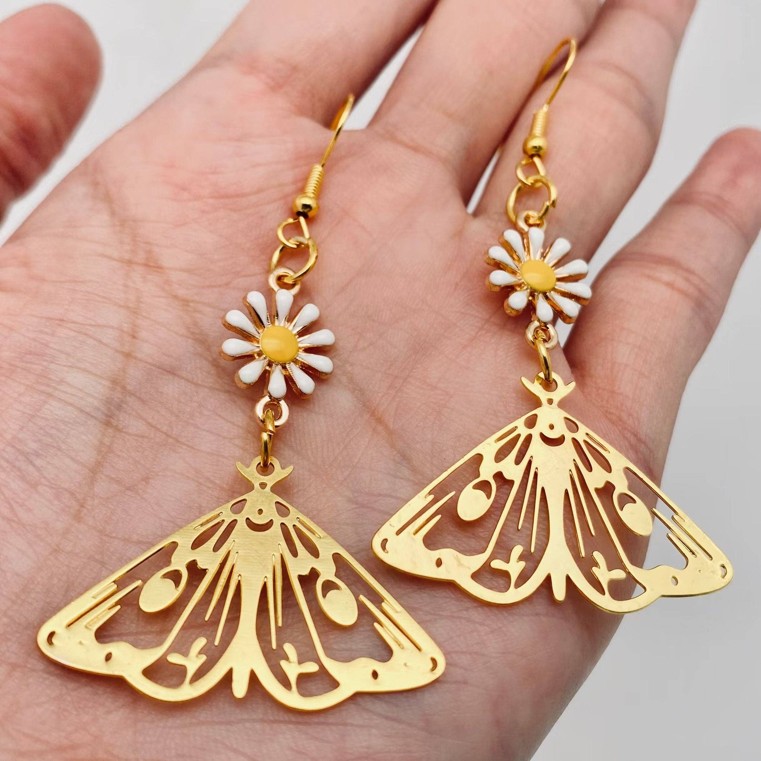 Highly detailed tea time Victorian inspired moths. This Ultra lightweight design will make heads turn with its unique details. All products are hypoallergenic and nickel free. *This item is handmade which means variations are likely! We think this makes each item extra special and adds that unique handmade touch. * Sugar Bird earrings are made with polymer clay . Polymer clay is a durable material but like most jewelry still needs treated with care. Do not shower, swim, sweat profusely in earrings to increase their longevity. Please do not sit anything heavy on the earring to prevent breakage. Polymer clay is a bendy material but lets try not to test its limits :) Store them away from oils and perfumes, and keep in a cool dry area. Think cellphone usage and storage. Your phone doesn't like sweat, swimming or sitting on your windowsill, same goes for jewelry! :)