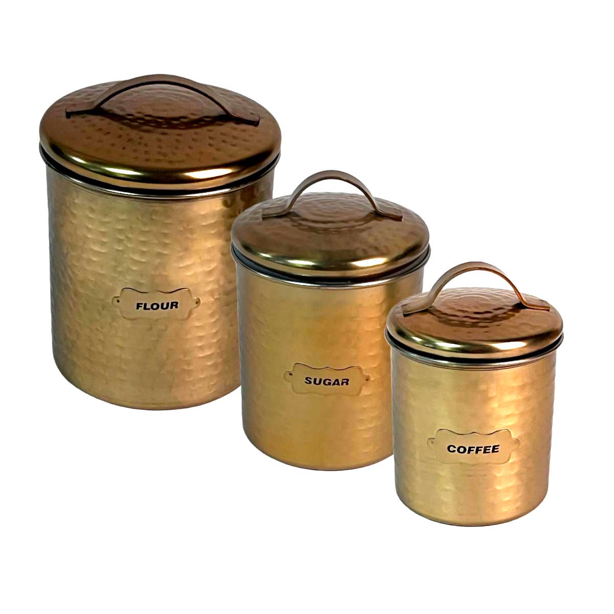 Wholesale 3-Piece Stainless Steel & Copper Hammered Canister Set