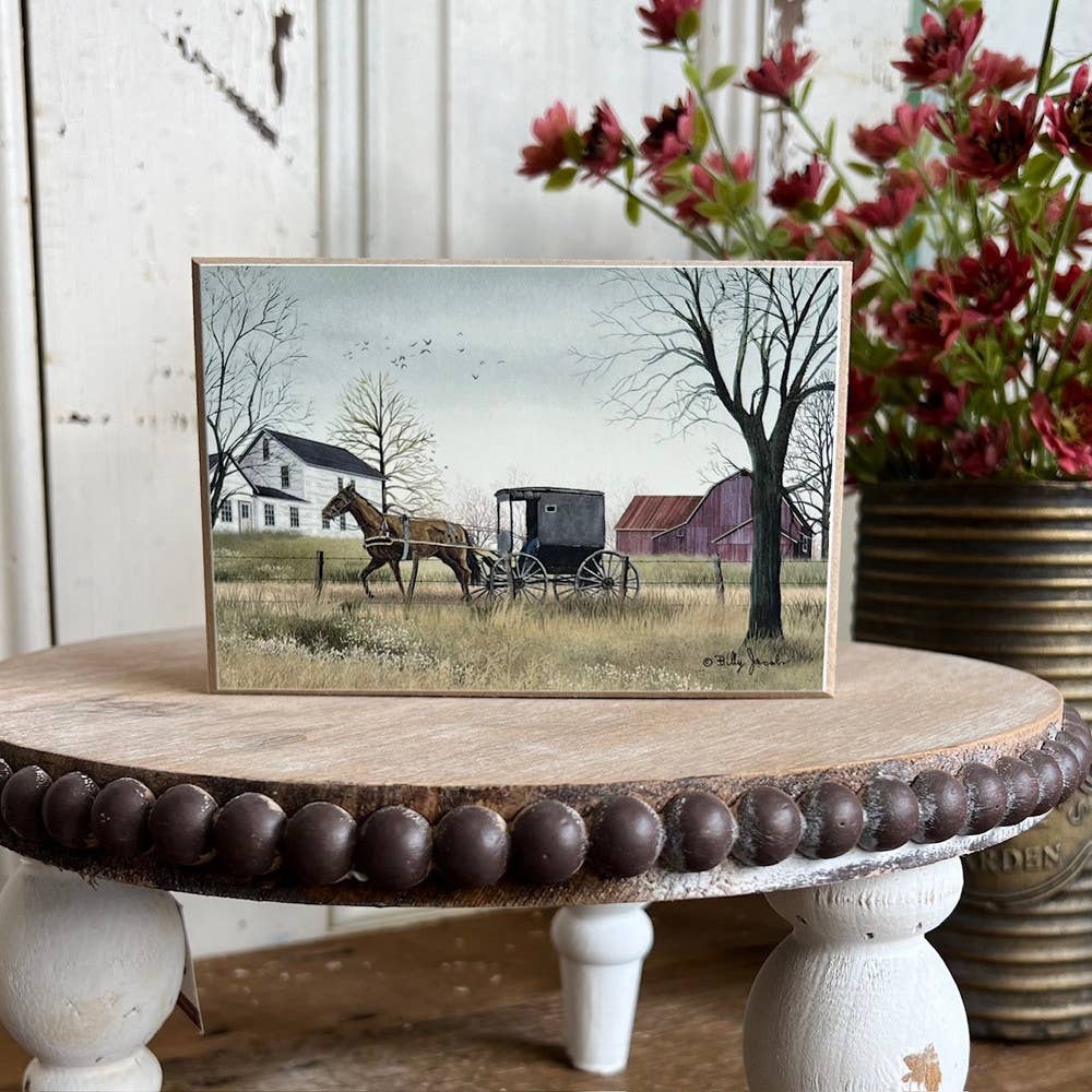 This Billy Jacobs block is called "Holstein" and has a red barn and a Holstein cow standing in the field. Perfect for a farmer or cow lover you know! The 4x6x1 size makes it perfect to display on table-top, shelf or mantle. Great inexpensive wholesale gift for your store's impulse buyers.