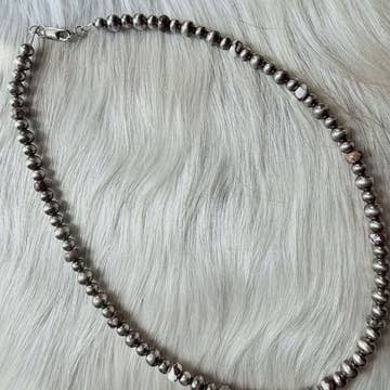 Graduated Sterling Silver Pearl Necklace- A timeless classic with a modern edge, this necklace features hand-polished sterling silver pearls in a smooth graduated design—4mm, 5mm, 6mm, 8mm, and 10mm. Available in multiple lengths to suit any style, from a choker-like 16" to a dramatic 24". Perfect for layering or as a refined standalone piece. Lengths Available: 16", 18", 20", 24" Materials: Sterling silver pearls Pearl Sizes: Graduated 4mm, 5mm, 6mm, 8mm, 10mm Finish: Hand-polished Style: Classic, versatile, elegant, layer, western, cowgirl