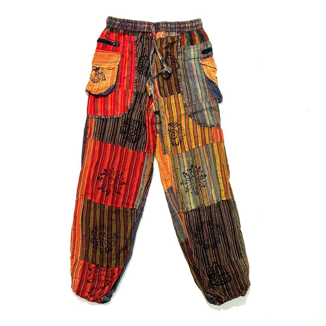 AMAN PANTS – Upcycled Patchwork Hippie Pants Live free and easy in our AMAN PANTS, crafted from upcycled fabric scraps for a one-of-a-kind look. These unisex patchwork pants feature a relaxed fit with an elastic drawstring waist for comfort and front & back pockets for practicality. Perfect for festivals, travel, lounging, or everyday boho living—each pair is as unique as you are. Features: • Made with upcycled patchwork fabric – every pair is unique • Elastic drawstring waist for a comfy, adjustable fit • Unisex style with relaxed silhouette • Functional front & back pockets • Eco-friendly boho-hippie vibe Made In Nepal Suggested, Hand Wash, Cold Water, Lined Dry Measurements: Flat Medium: Waist 28-34 inches, Length 38 inches, Inseam 26 inches Large: Waist 36-38 inches, Length 40 inches, Inseam 27 inches XLarge: Waist 40-42 inches, Length 42 inches, Inseam 28 inches XXLarge: Waist 44-46 inches(relaxed), Length 44 inches, Inseam 29 inches