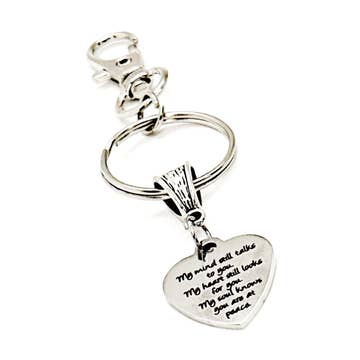 One of our 100% genuine American pewter charms hung from a steel standard size key ring.