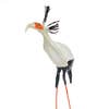 Do you know why the cool secretary bird gets its funky name? Well, it is because of their quill-like crests on the backs of their heads that resemble 18th-century clerks with pens tucked into their wigs. Using the seedpods of the Ulumbu Tree, Zimbabwean artists have created these charming little birds. Standing on hand twisted wire feet, they are hand painted in the rich bright colors of each bird's plumage. Each one is a little work of art! Height: 6.5" Length: 4" Width: 2.5" (measurements are approximate, as seedpod sizes vary naturally)