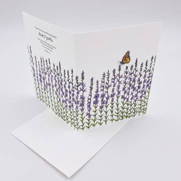 Elegant watercolor lavender cards perfect for wellness and botanical retail sections! Sophisticated design features delicate purple lavender sprigs tied with natural twine bow, creating perfect blend of botanical elegance and rustic charm. The minimalist watercolor composition showcases lavender's natural grace with characteristic clustered blooms in beautiful purple and violet tones. Card details: * Greeting card measures 4.25" x 5.5". * Card is blank inside. * White envelope included. * Single cards are individually packaged in a clear sleeve * Boxed sets of 6 are packaged in a Kraft box with envelopes - ready to be gifted. * Original artwork created by Liz Pope. IDEAL FOR: Wellness shops, spa retail, herb gardens, aromatherapy stores, botanical displays, gift shops, sympathy card sections, thank you card displays Appeals to customers seeking calming, therapeutic designs and aromatherapy enthusiasts who appreciate lavender's peaceful qualities.