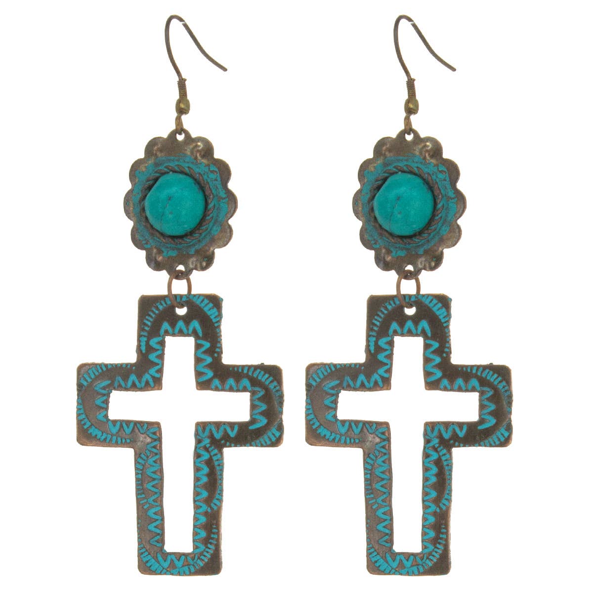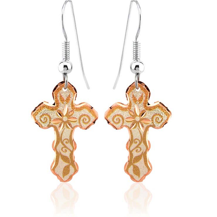 Religious Designs Earrings. Black cross flower earrings are artisans crafted in a beautiful flower design with a striking black background. Buy stylish and original cross earrings intended to make you smile every time you wear them. You will get a magical sparkle with our diamond cut jewelry copper cross earrings.