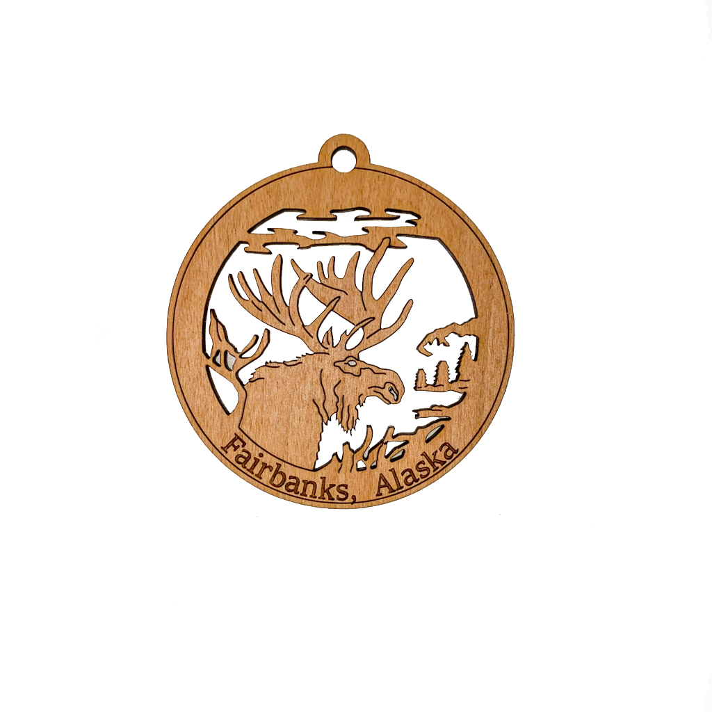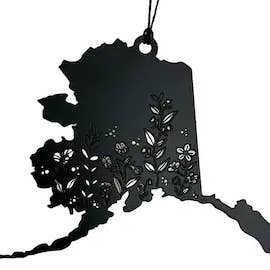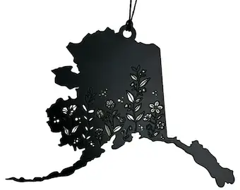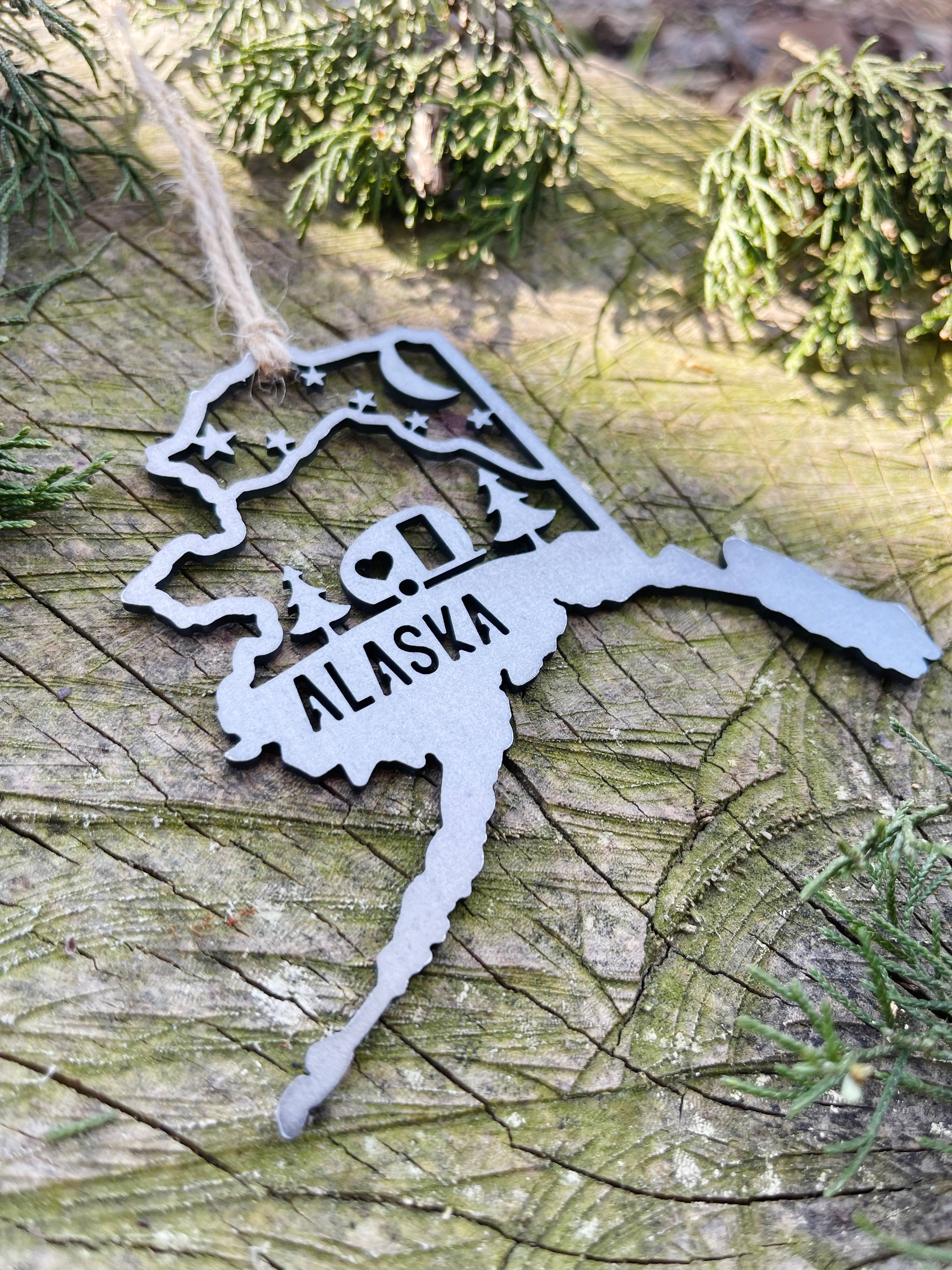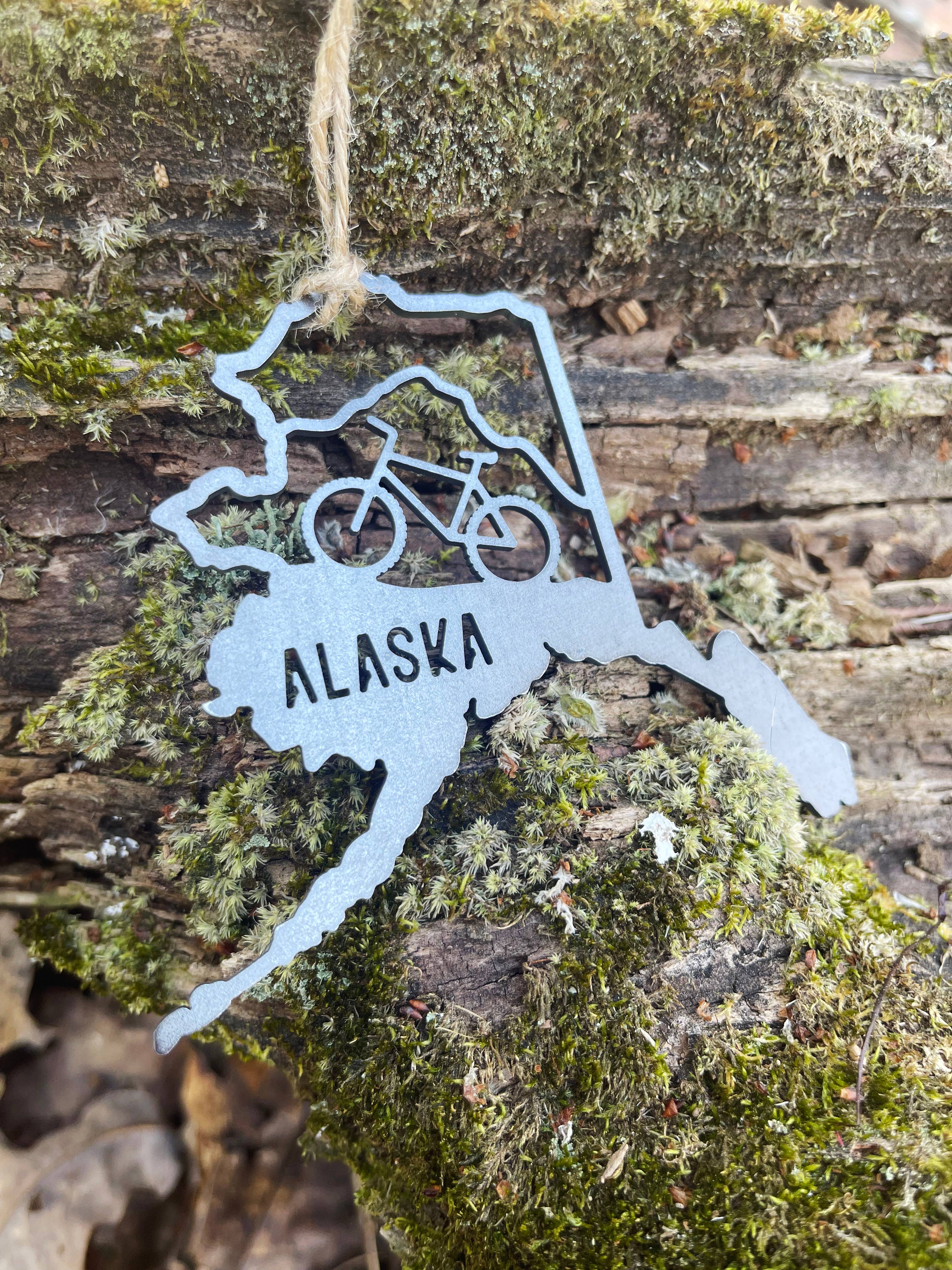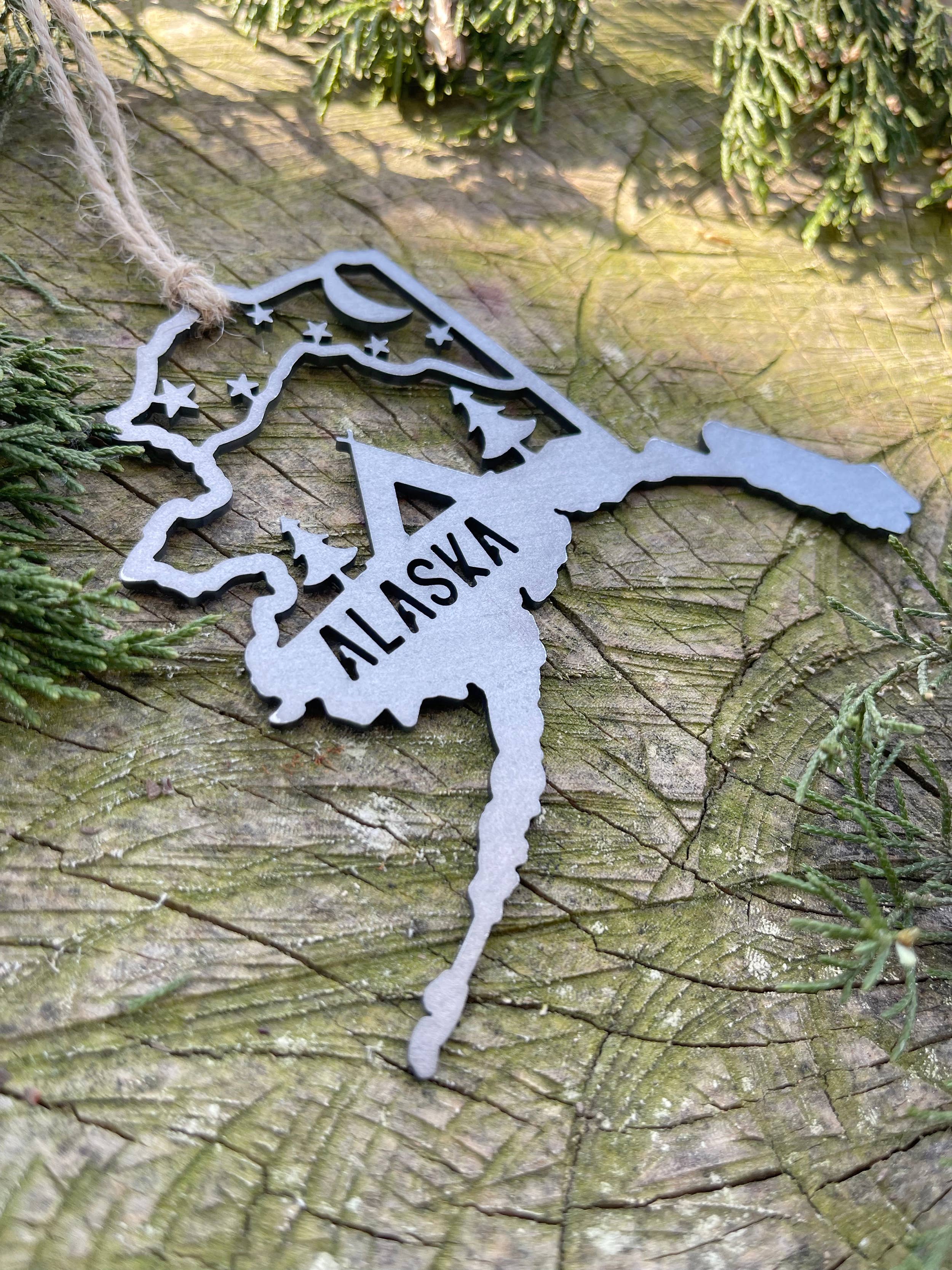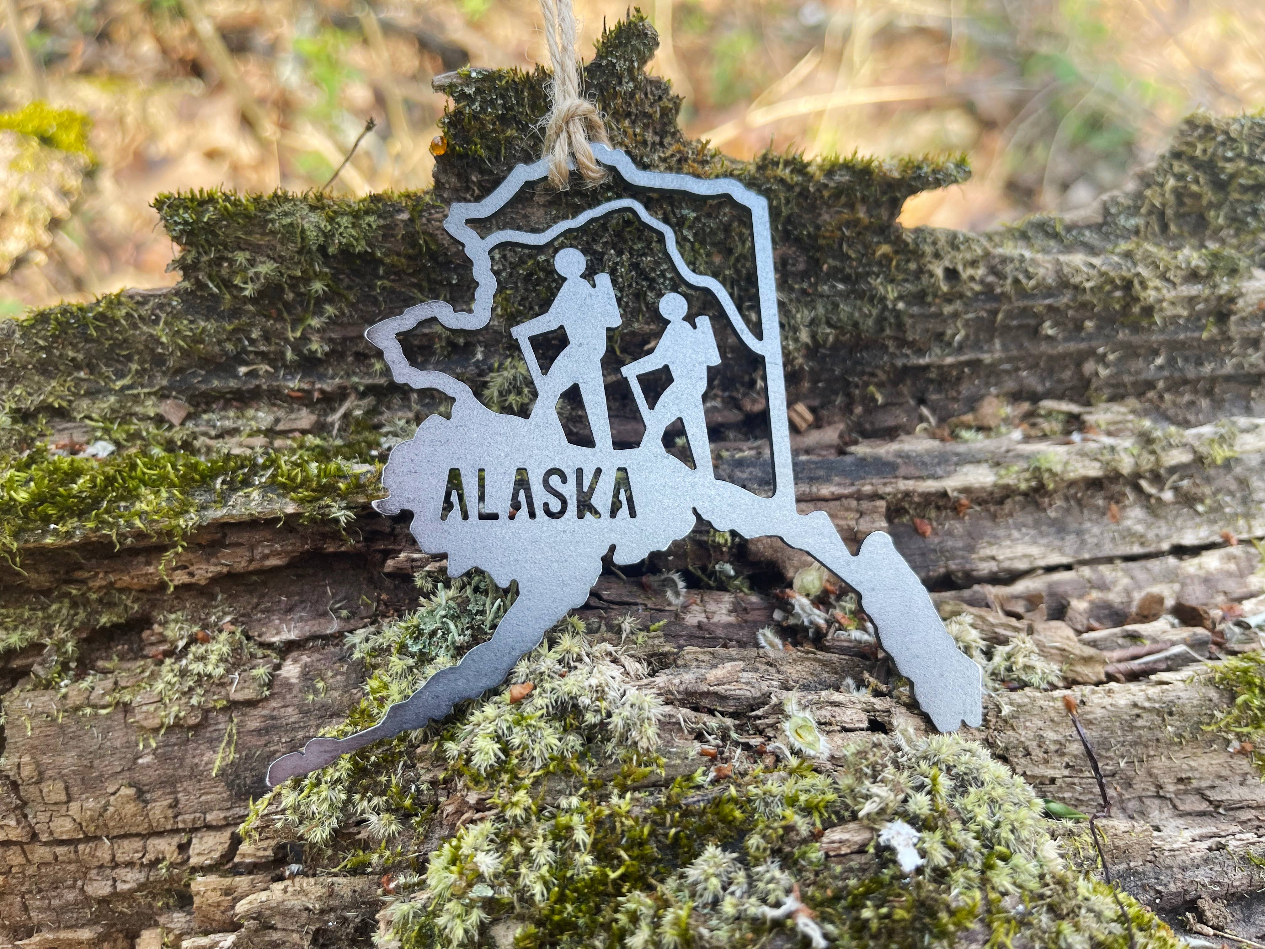 Alaska State Bear Scene Raw Steel Ornament made in USA *NEW