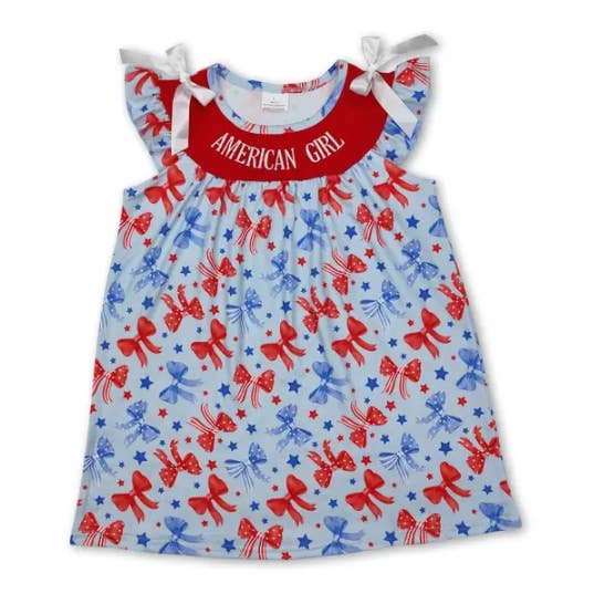 Straps boots bow baby girls 4th of july romper