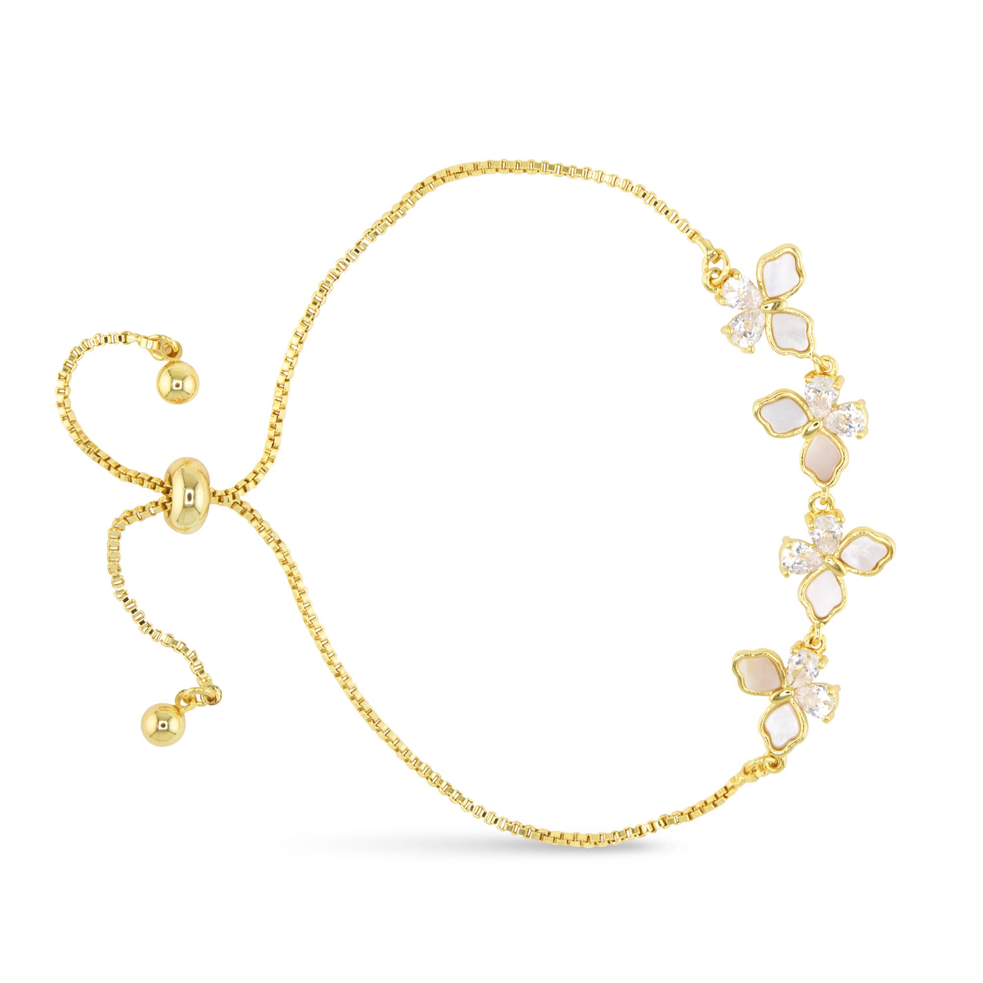 Gold-plated ball stretch bracelet with freshwater pearl. Measures 17cm.