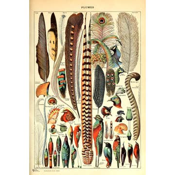 Vintage Millot Plumes Bird Feather Print w/ optional frame