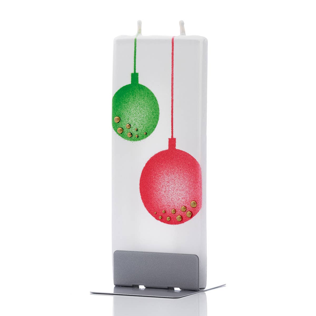 "Hand-painted á Drip Resistant á Twin wicks burn evenly á Self-extinguishing á Unscented and smoke-free Hand-painted in Lithuania, these candles stand out in their simplicity. The flatter design is a unique approach to candles that have a minimal and eye-catching feel. The twin wicks burn evenly and self-extinguish as they near the steel base, without any dripping wax or smoke. -Handmade using the highest quality German raw materials -Twin wicks ensure candle burns evenly and self-extinguishes as it nears the base -Steel stand helps make candle attractive display piece and doubles as a snuffer -Non-dripping, evaporates as it burns -Unscented and smoke-free -Every candle is hand painted -Creative gift and great stocking stuffer -Fits perfectly inside a greeting card Burning time: 3-4 hours Made in Lithuania Materials: Highly Refined Paraffin wax, Steel, Organic Cotton Wick Includes: One handmade flat candle and steel stand Dimensions: 2.4"" x 0.4"" x 5.9"" Weight: 0.22 lb"