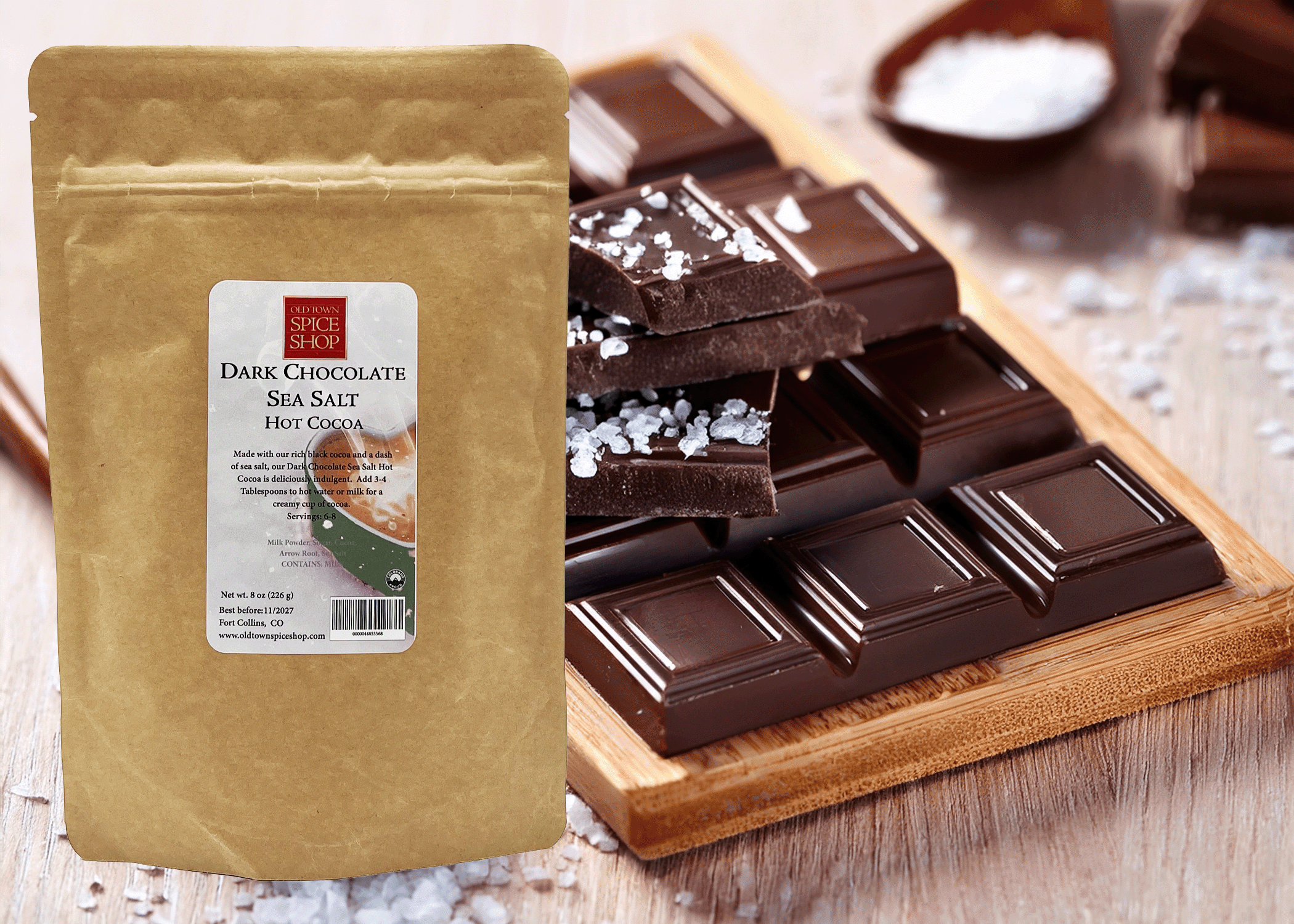 We blend fresh, organic lavender with our creamy white cocoa powder. Just add 2 1/2 tablespoons per cup of warm milk for a cozy cup of hot chocolate. Each bag makes 8-8 oz servings.
