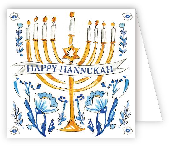 An elderly gentleman reading a Haggadah in front of a painting of the Exodus out of Egypt. The seder table with candles, matzoh, and the seder plate is set in front of him. Insider: HAPPY PASSOVER. May we work together for peace, justice, and freedom for all. Printed on white cardstock; measuring 4.25" x 5.25"; with white, self-sealing, A2 envelopes.