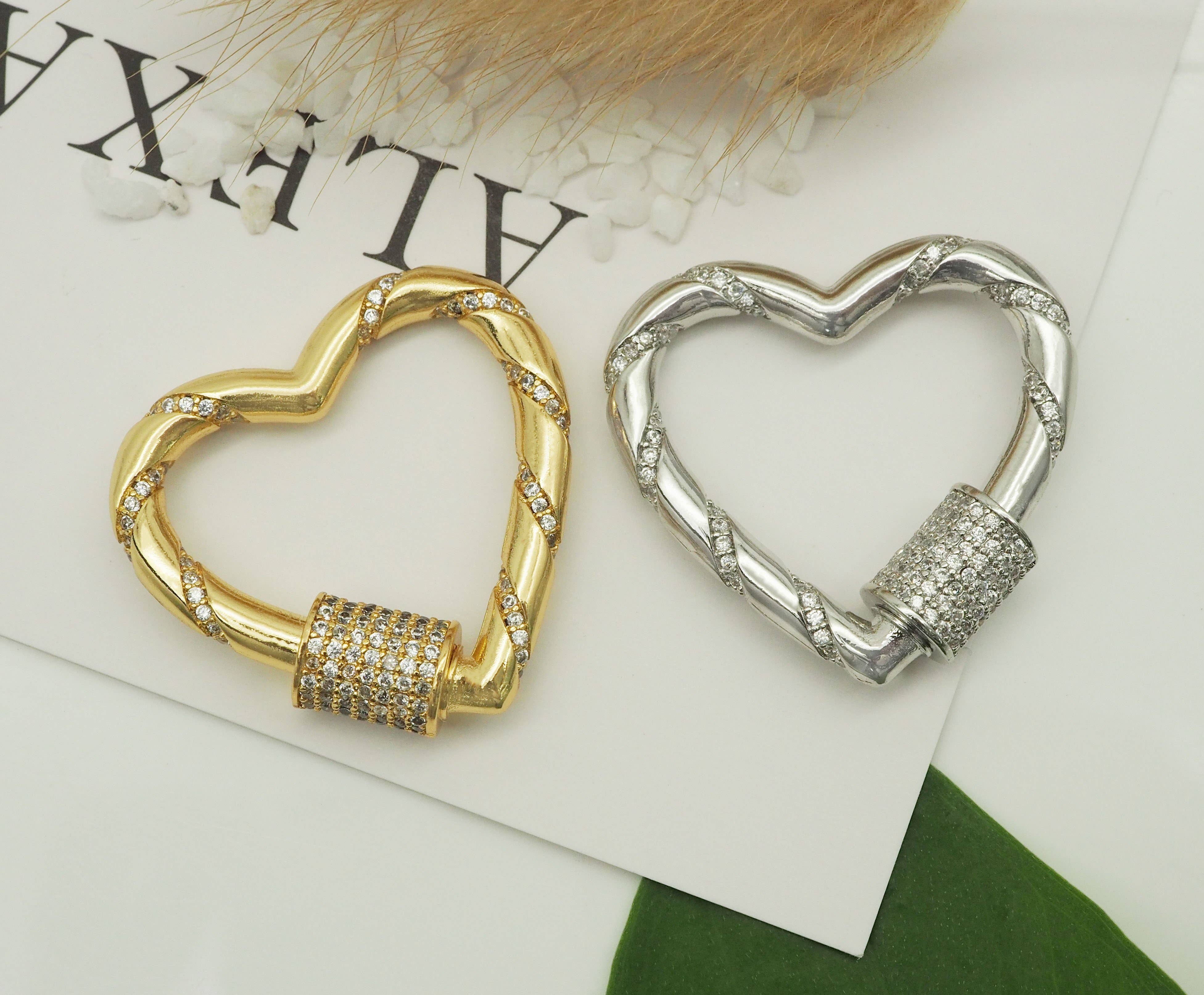 Wholesale 18K Gold Filled Heart Shaped Carabiner Lock, Carabiner Clasp, Screw in Clasp (A29)