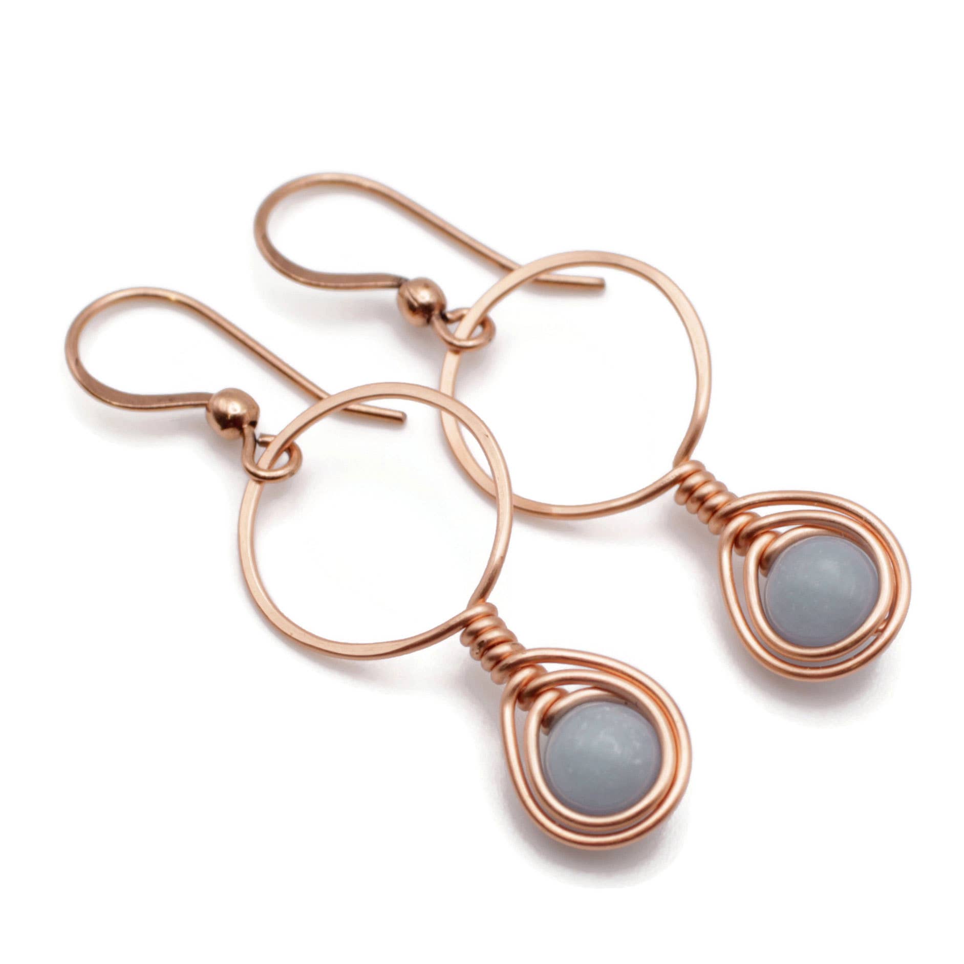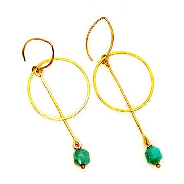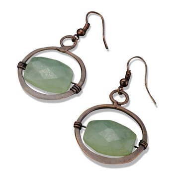 • Handmade in Minnesota with copper wire. • The ear wires are also copper. • Lightweight. Green Malachite stone is 6mm. • Total length including ear wires is 1 3/4". The hoop is 1/2" wide.