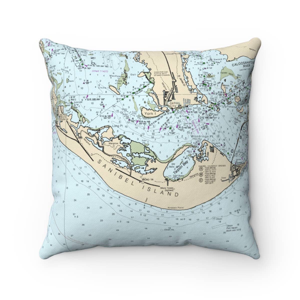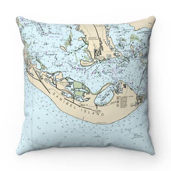 13" x 19" 20" x 20" Linen and Sunbrella Knife Edge and Corded Finishes Ox Bow Decor has taken nautical maps to a new level. Coastlines of Massachusetts, New Hampshire, Maine, Connecticut, Rhode Island, New York and New Jersey are now in Yachts, Scallop Shells and Vintage Bathing Suits. Other coastal locations are available upon request. Pillows have hidden zippers in the back and linen covers come with feather down fills and Sunbrella covers come with faux down poly fills.