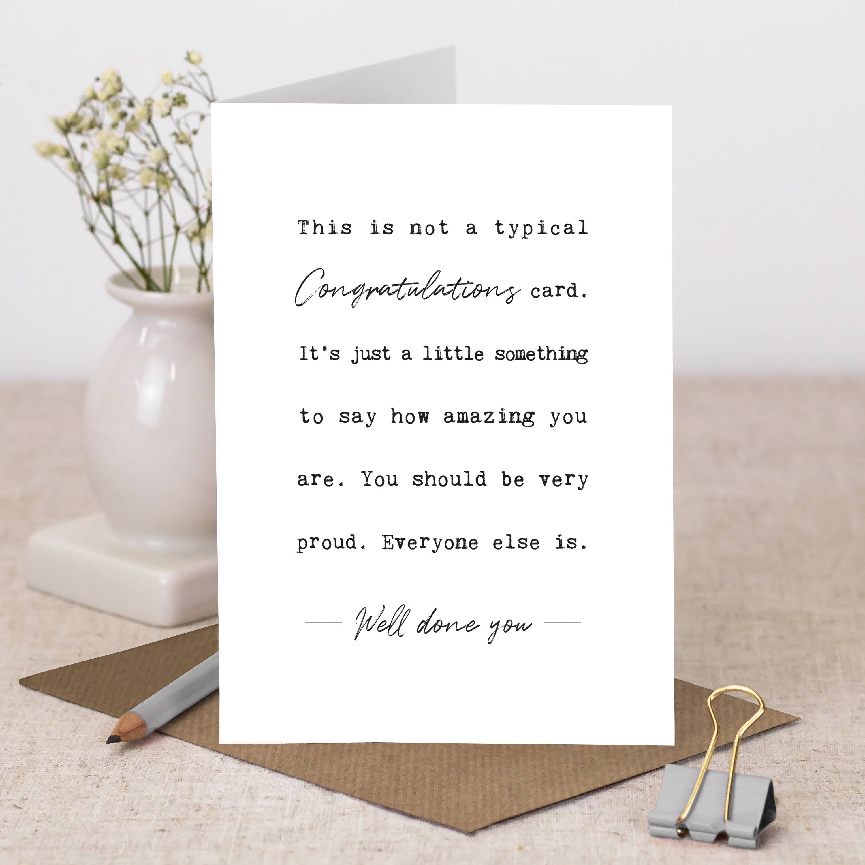 SKU: CC094 Made in United Kingdom Color: Rose Gold and White Finish: Foil Occasion Theme: Congratulations Theme: Empowerment Tone: Motivational Weight: 50 g (1.76 oz)